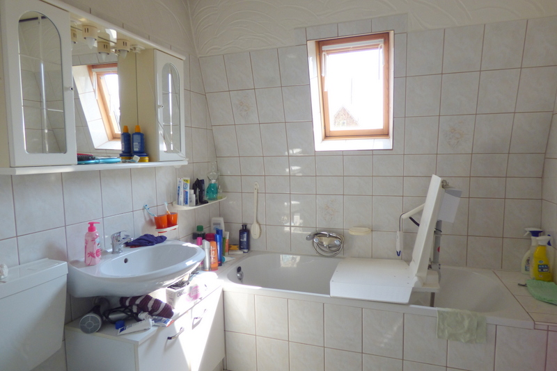 In den 80iger Jahren ist das Haus saniert worden. Die Wohnfläche von ca. 120 m² des Haupthauses verteilt sich auf ein großzügiges Wohn- Esszimmer, Küche, Diele und Gäste WC im Erdgeschoss. Das Obergeschoss bietet 3 Schlafräume und ein modernisiertes Vollbad.Im Spitzboden befindet sich Ausbaureserve.